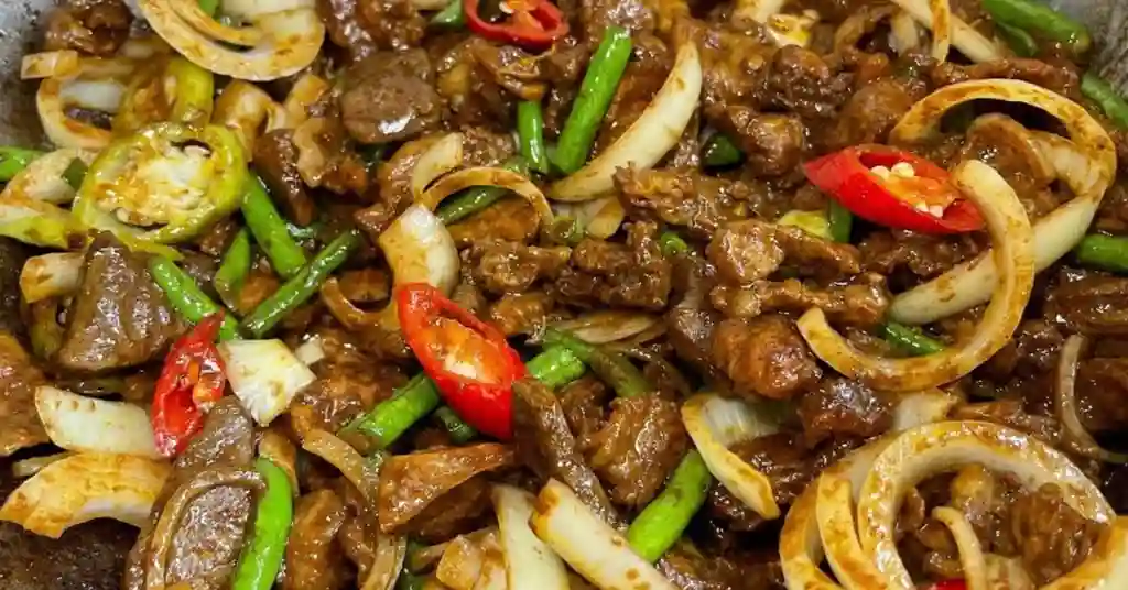 Hidangan ini menekankan teknik menumis yang betul, pemilihan daging yang sesuai serta kawalan sos supaya setiap hirisan lembut dan bersalut cantik.